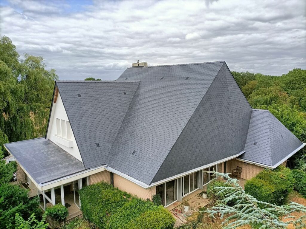 On doit notamment à l’entreprise la réfection de l’école de Glageon – Site Jacques Brel, un beau chantier de près de trois semaines. Le chef d’entreprise travaille avec les collectivités, les entreprises et les particuliers. Et quand on lui demande ce qu’il préfère, il n’hésite pas longtemps : « c’est sympa quand on peut travailler avec de l’ardoise naturelle, c’est sûr… et quand il y a un peu de détails : des velux, des arêtiers… »